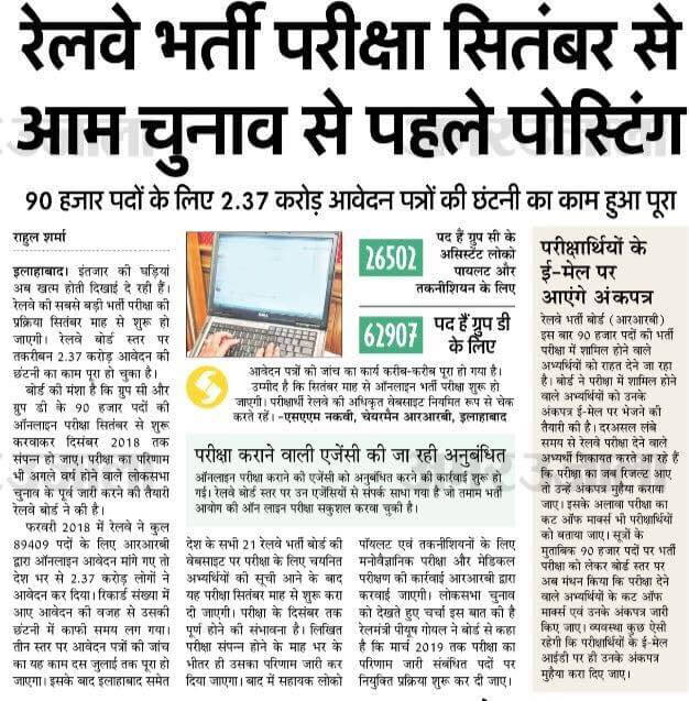 Railwaya Recruitment 2018 Second Stage CBT To be notified soon